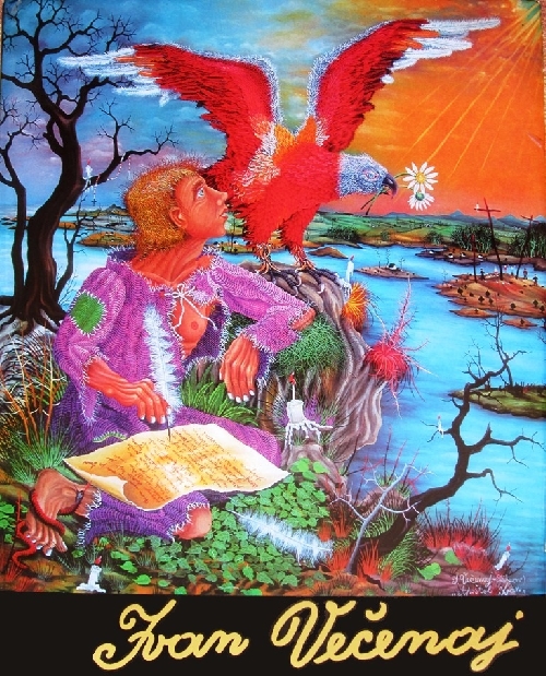 La sua narrazione podravina e quasi grottesca trasforma le leggende dell'Antico e del Nuovo Testamento in scene selvagge in cui riconosciamo ancora la Podravina non solo nell'ambientazione e negli sfondi, ma anche nell'espressione stilistica. Tuttavia, era già intorno al 1964/65 catapultati in un mondo favoloso e fantasmagorico, il cui modello non era più adatto agli stilisti "primitivisti" degli anni '50. In quel complesso, Ivan Večenaj è un pittore che, al culmine della pittura naïf, ha incarnato diverse situazioni di quest'arte (soprattutto della Podravina), e prima di tutto il problema: come in una certa armonia di tradizione e prototipi ereditati possa questo complesso essere rinnovato, e che un modo per prolungarlo ed elevarlo a nuovi valori iconologici e stilistici. Inoltre, Ivan Večenaj, con il suo sviluppo - spontaneo, ovviamente, che non significa del tutto inconscio - ha posto e risolto a modo suo il problema: cosa si può fare con una nuova e alta abilità tecnica, e cosa significa effettivamente perdere l'ingenuità del primitivismo (nella tecnologia e nelle capacità progettuali), ma conservare l'ingenuità dell'immaginazione, ovviamente, il distacco dalla cultura artistica contemporanea. Questa separazione, che ovviamente non è solo artistica, ha permesso a questo pittore di sentire la particolarità dell'espressione e l'audacia della fantasia, e allo stesso tempo il contatto diretto con la tradizione e la vita della piccola patria della Podravina.