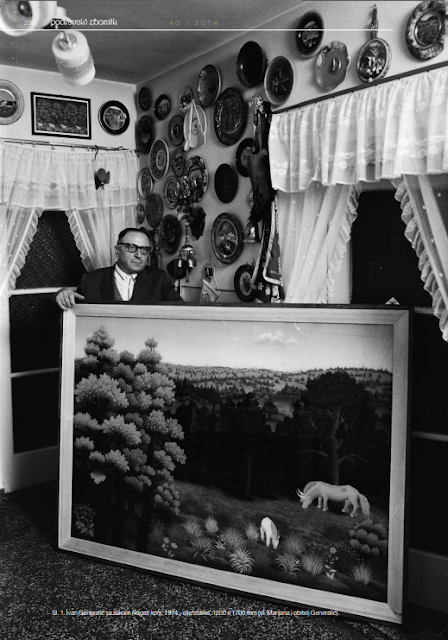 Come suggerisce il titolo, nella prima parte della presentazione mi soffermerò sul bestiario di pittura di Generalić, dove mi sono lasciata trasportare dal pittore (conversazionale ) interpretazioni di alcuni motivi zoologici. E così, mentre alcuni storici dell'arte leggevano il suo dipinto "Raspetipevac" (1964) come un'allegoria del destino, un dramma umano universale, lo stesso pittore dichiarava - dal punto di vista della vita quotidiana - che si trattava "solo" di quello del pittore (il suo ) vendetta su un gallo molto rumoroso (realistico). In altre parole, come ha detto a Mladen Pavković: "Il gallo e le galline sono grandi amici dei contadini. Le persone spesso parlano con loro" (Generalić, secondo Pavković 2012:69). Il tocco assoluto di Generalić con la natura è mostrato anche dal suo dipinto "Il mio studio" (1959), dove la parola per studio è il suo cortile di campagna e, come un artista di land art, sostituisce lo studio e la galleria con la natura, come il pittore ( cioè, come lo definì poeticamente Dimitrije Bašičević Mangelos nella monografia - "un contadino autentico e semialfabetizzato nell'orbita della nostra cultura"), non apprezzava.