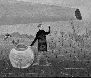 La sua motivazione? - Lo stesso ha fatto eco ai dipinti di Rabuzin in generale. Rabuzin ha detto in un'intervista per il catalogo della mostra: "Vivo nella natura. Il mondo visto ha bisogno di essere cambiato, piantato e tutto pronto per essere in ordine. Essere un giardino di cibo per un brav'uomo. In quel mondo dipinto io faccio ordine, pianto fiori, do il sole". Un rapporto attivo, quindi, di fantasia, benevolenza, ingenua speranza che qualcosa si possa fare, così ora sogghigno alle teste di questo romanticismo rurale che, in compenso della nostra moderna povertà, è apparso vicino, e non possiamo sfuggirgli. Allora dov'era necessario? Ci sono davvero delle lacune in noi in cui questa arte entra irresistibilmente, in alcune lacune nostalgiche che a malapena riconosciamo e di cui ci vergogniamo un po'?